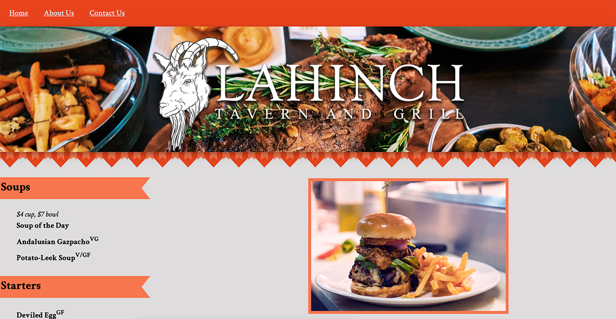Local restaurant webpage:
